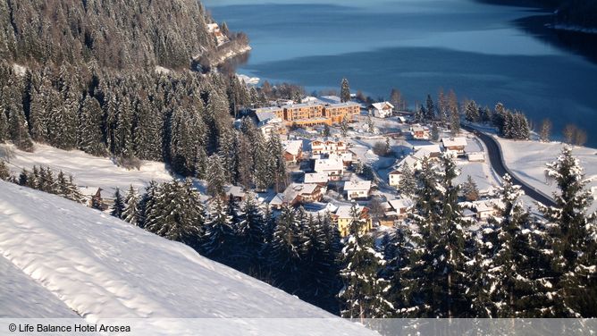 Het comfortabele 4 sterren superior Arosea Life & Balance Hotel ligt direct aan het Zoggler stuwmeer, op ongeveer 4 km van het dorpscentrum van St. Walburg en de dichtstbijzijnde winkels. Een skibus stopt op ongeveer 350 meter van het hotel en brengt je naar het dalstation Schwemmalm, op ongeveer 1 km afstand. De dichtstbijzijnde langlaufloipe ligt op ca. 4 km afstand.