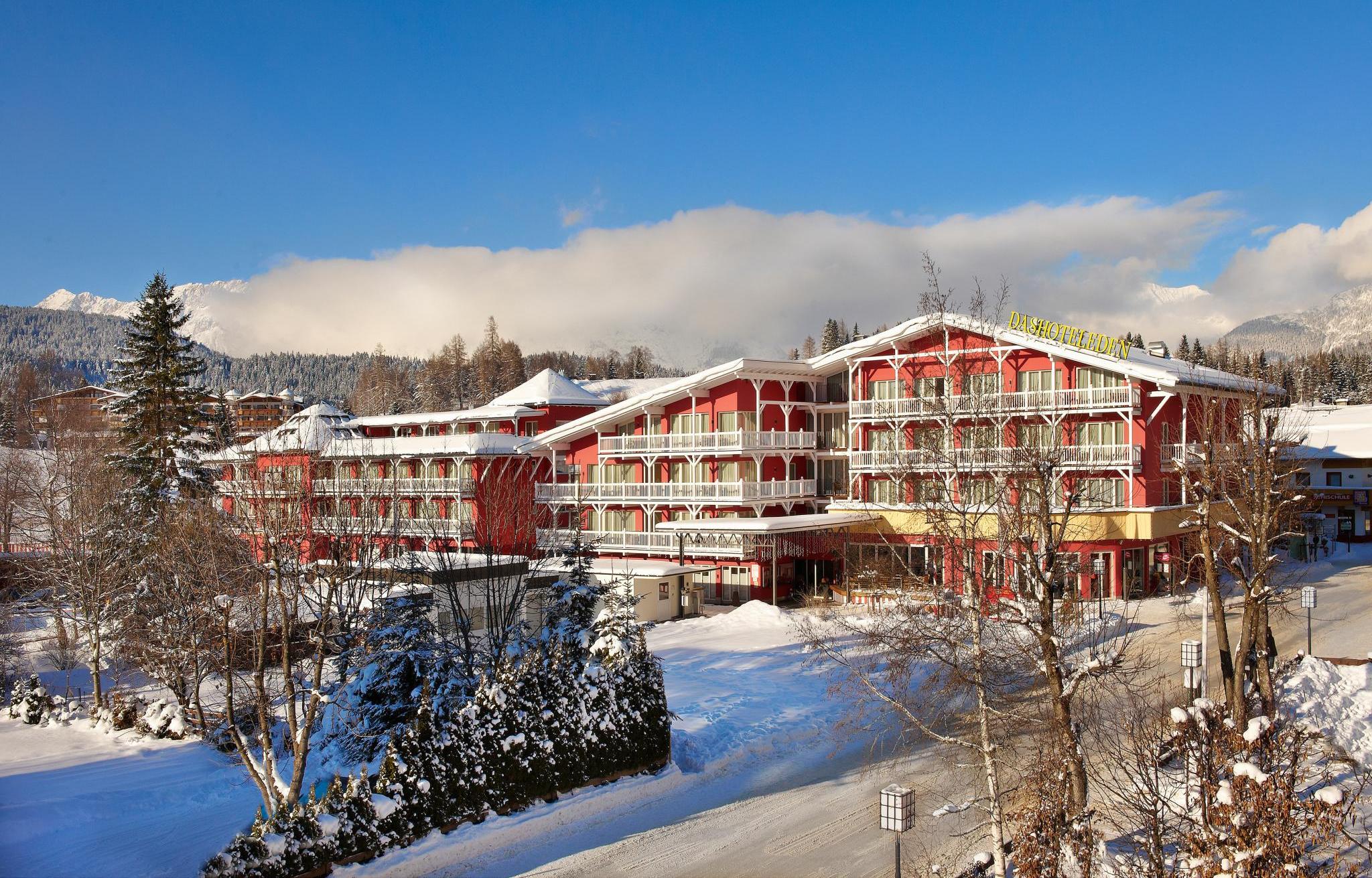 Het stijlvolle 4-sterrenhotel Das Hotel Eden is rustig gelegen aan de rand van het centrum van Seefeld. De Rosshütte skilift ligt op ongeveer 1,2 kilometer afstand, en de skibus stopt al op zo’n 100 meter van het hotel.