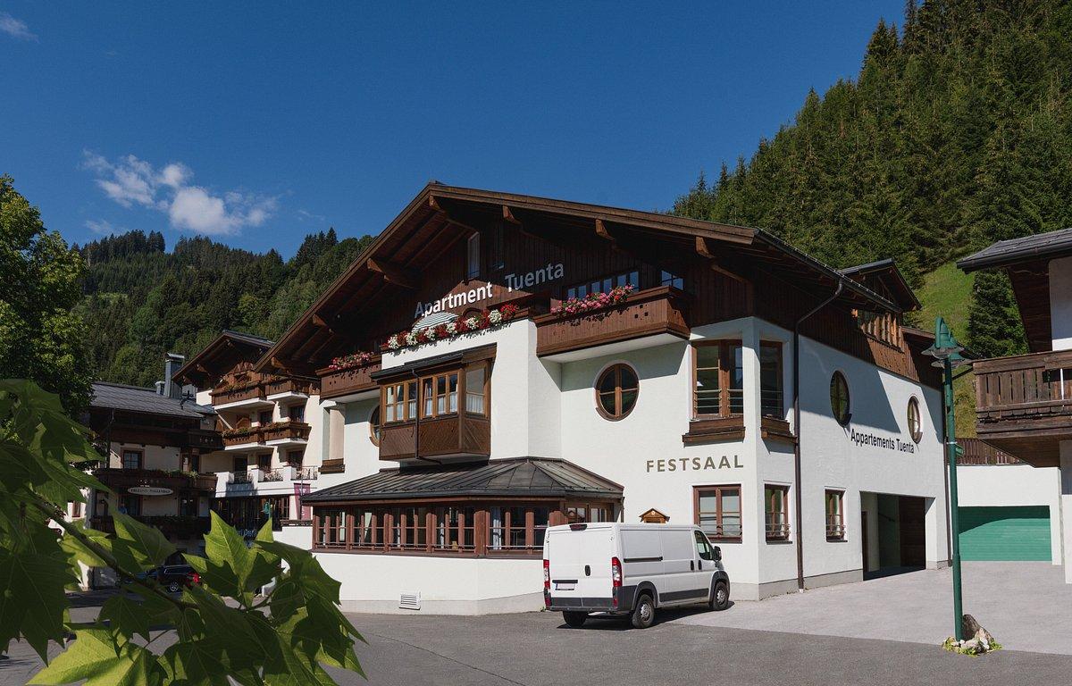 Haus Tuenta ligt midden in het centrum van Dienten am Hochkönig! De appartementen liggen direct naast de skiliften en pistes. De skibus stopt voor de deur van het complex.