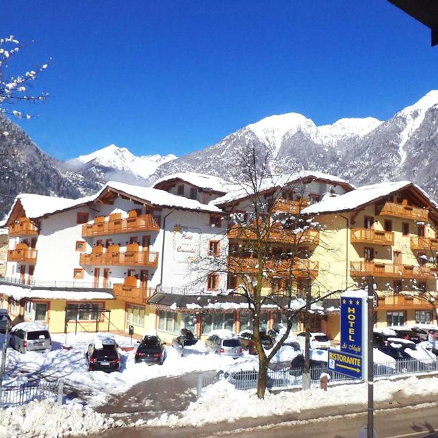 Voor een gezellige vakantie in de sneeuw samen met je gezin, ben je bij Hotel Canada aan het juiste adres. Dit luxe en comfortabele 4-sterren hotel ligt in het pittoreske centrum van Pinzolo, vlakbij de Pra Rondont skilift en wordt omgeringd door witte bergtoppen en uitgestrekte Alpenweiden. Door de gunstige ligging is Hotel Canada de ideale locatie voor een rustige en luxe vakantie in de Italiaanse bergen.