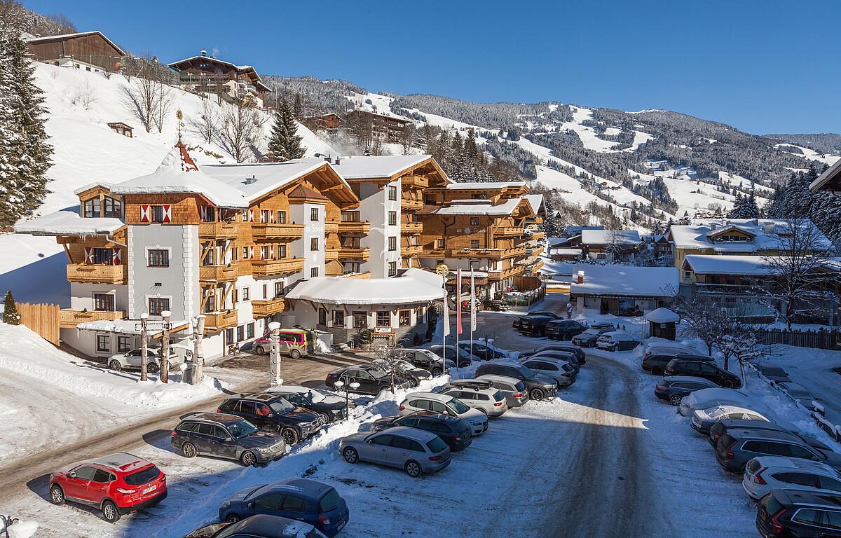 Hotel Die Sonne is een fantastisch 4-sterren Superior hotel in Saalbach, gelegen aan de weg richting Hinterglemm. Het centrum van Saalbach begint op iets meer dan een kilometer afstand evenals de Schattberg X-press. Op 50 meter afstand van het hotel stopt een skibus die je zowel naar Hinterglemm als naar Saalbach kan brengen. Het hotel heeft ook eein eigen shuttle-service richting de skiliften.