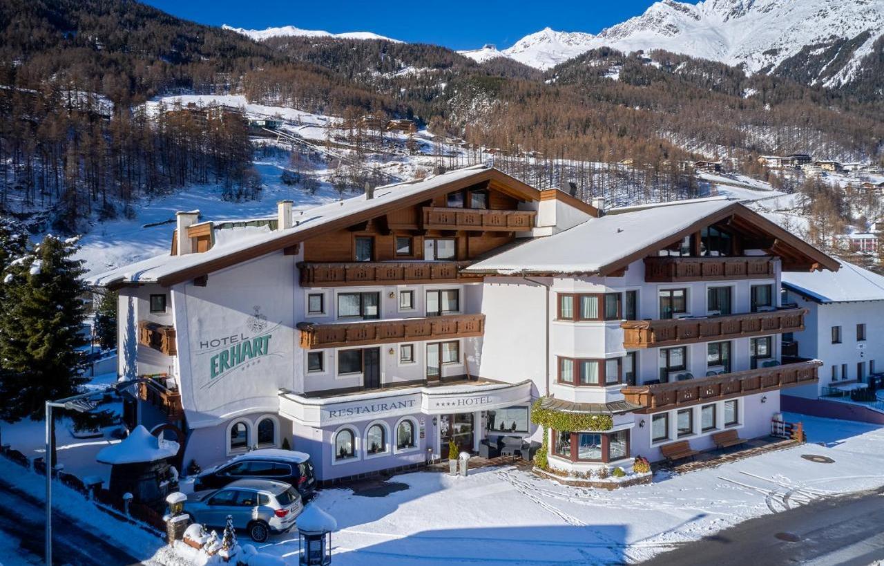 Het kleinschalige Hotel Erhart heeft een rustige ligging in de wijk Windau in Sölden. De afstand tot het centrum en de Gaislachkogelbahn is ongeveer 600 meter. De skibus stopt op ca. 300 meter afstand.
