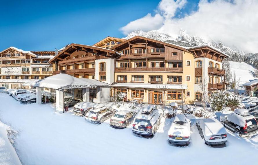 Hotel Leonhard is een comfortabel en sfeervol 4-sterrenhotel, prachtig gelegen aan de voet van de Leoganger Steinberge in het Oostenrijkse Salzburgerland. Dit ruime familiehotel vormt een ideale uitvalsbasis voor een wintersportvakantie in het skigebied Saalbach Hinterglemm Leogang Fieberbrunn. De Steinbergbahn ligt op ca. 500 meter afstand en de Asitzbahn op ca. 1000 meter, beide eenvoudig bereikbaar te voet of met de gratis skibus die voor de deur stopt. Het centrum van Leogang bevindt zich op circa 2,5 km van het hotel.