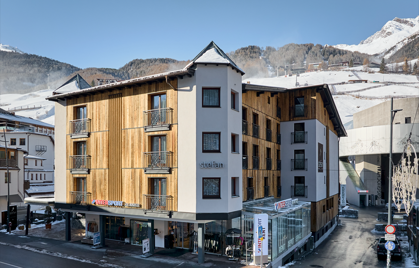 Het zeer comfortabele 4 sterren Hotel Stefan heeft de beste ligging van Sölden, direct in het centrum naast de Giggijoch lift. Terugskiën kan tot tegenover het hotel!