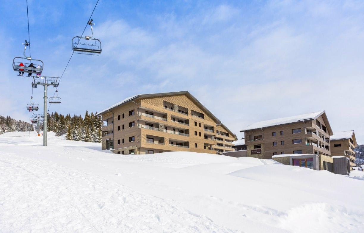 De 4* Résidence MMV Les Chalets des Cimes, bestaat uit 8 chaletgebouwen rondom een pleintje en ligt bovenin Les Saisies. De skiliften Chard du Beurre en Bisanne zijn dichtbij en door de piste achter de residence is het een echte ski-in/ski-out locatie! Op ca. 200 meter afstand is een kleine supermarkt en het centrum is ca. 5 minuten lopen.