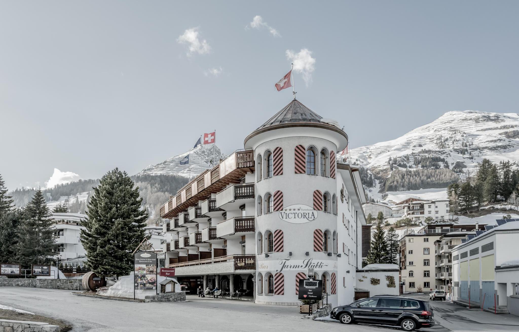 Het charmante 4-sterren Turmhotel Victoria in Davos-Dorf combineert comfort met een ideale ligging. De Parsennbahn skilift ligt op ca. 500 meter en ook de dichtstbijzijnde skipiste is binnen enkele minuten te bereiken. Het centrum van Davos-Dorf met diverse winkels, restaurants en cafés ligt op slechts ca. 200 meter afstand. De skibus stopt praktisch naast het hotel (ca. 50 meter).